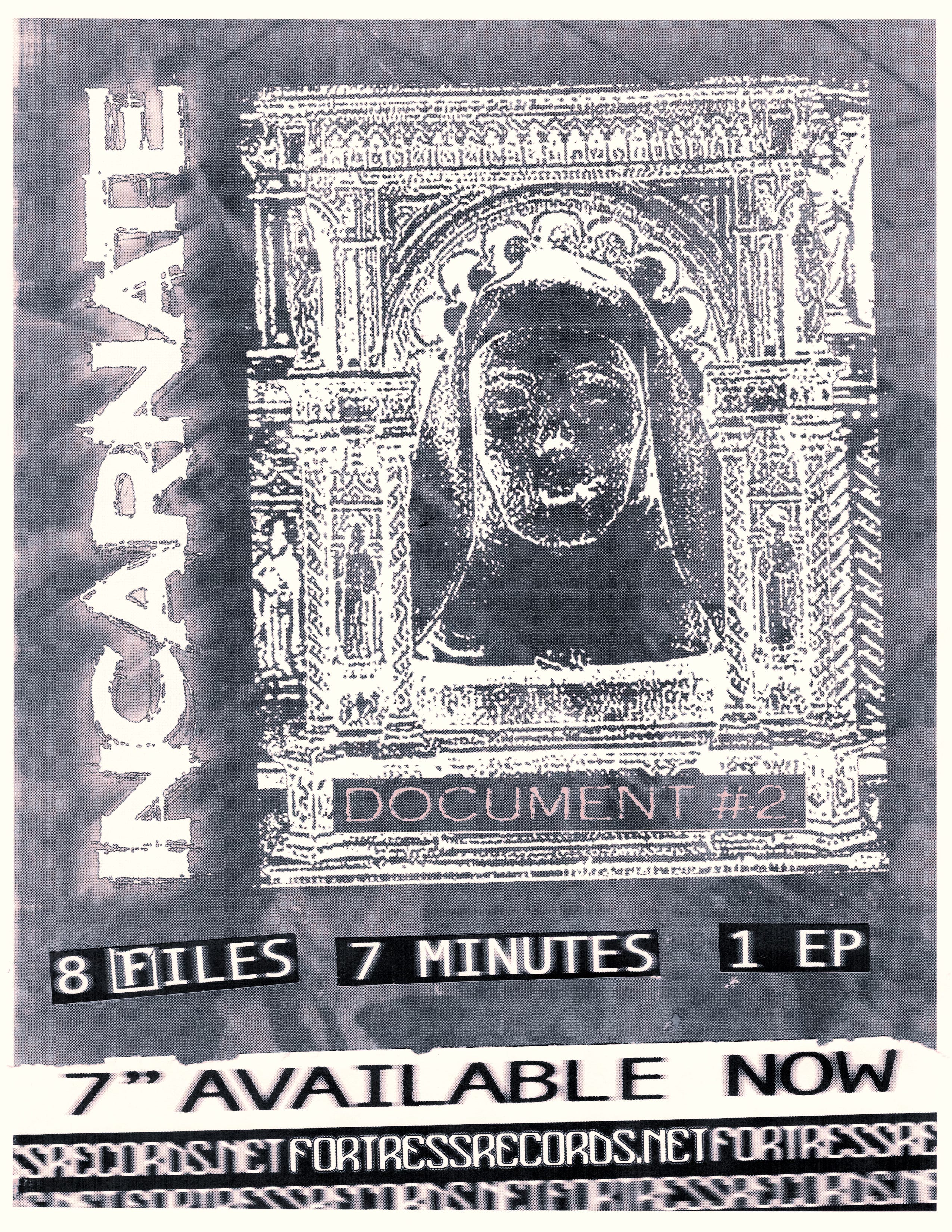 South Florida’s own INCARNATE brings you their second batch of fucked up sounding tracks. A medley of various furious acts whether it be Infest, Integrity, Assuck. The final result, eardrum rupturing noise terror with mosh parts. Also Tobby sounds like Megatron, I’m in! Big step up from the demo that released last year. The band and I flip flopped a whole shit ton on what format to press this to, it was almost gonna be on tape, but the tracks demanded more from me, we almost went with CD and that didn’t feel right either so… tried and true… there for me and you… 7” wax press.